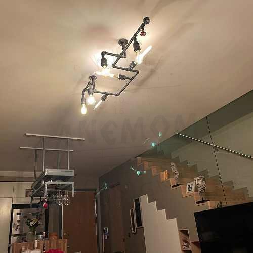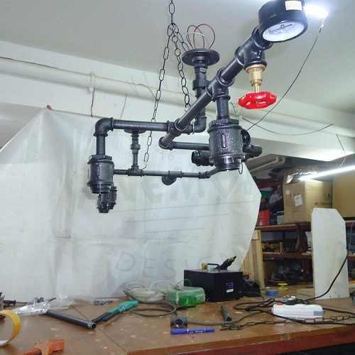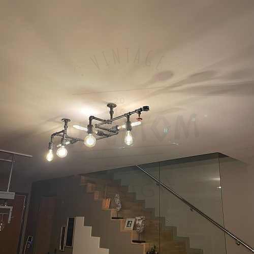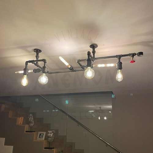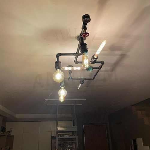 Avize Retro Tarz Su Borusu Manometre Vanalı Siyah Bakır Altın Gri