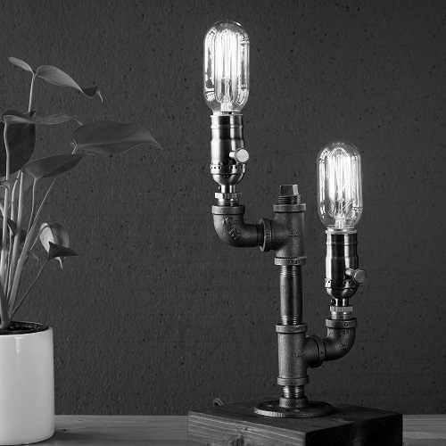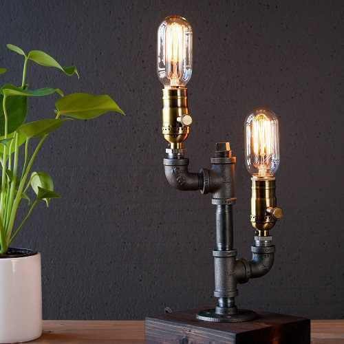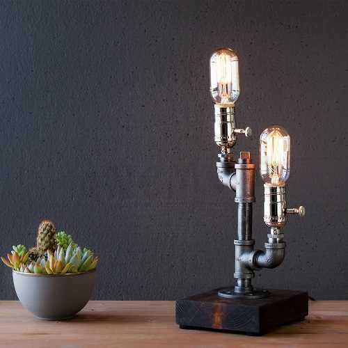 Endüstriyel Boru ve Ahşap Kombinasyonu Masa Lambası