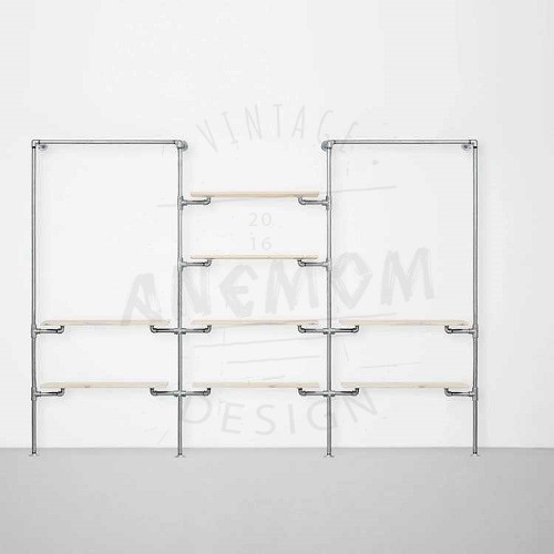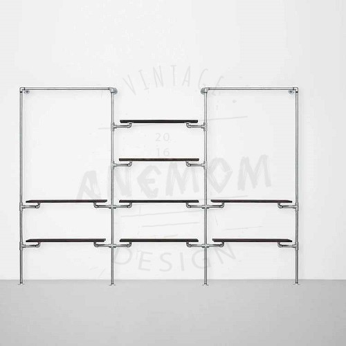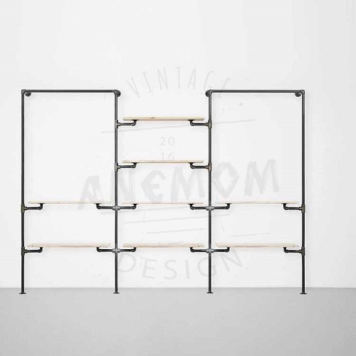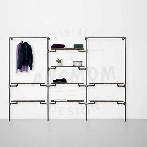 Elbise Askı ve Rafı Butik Mağaza Konfeksiyonlar İçin Üç Bölüm Sekiz Raflı Gardrop Duvar Tipi Su Borusu Retro Tarz