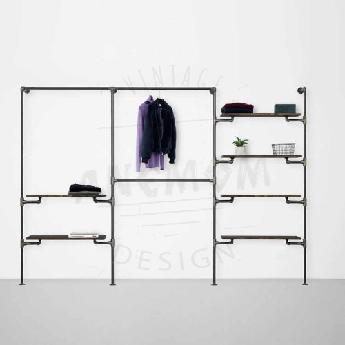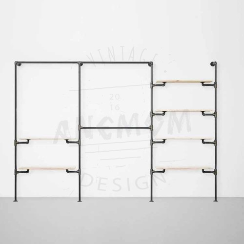 Elbise Askılığı Portmanto Üç Bölümlü İki Bir Dört Yan Yana Raflı Gardrop Duvar Tipi Su Borusu Retro Tarz